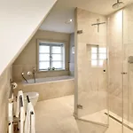 Tot de badkamerfaciliteiten van deze woning behoren ook een douche. Er zijn een haardroger en badlakens voor het comfort van de gasten.